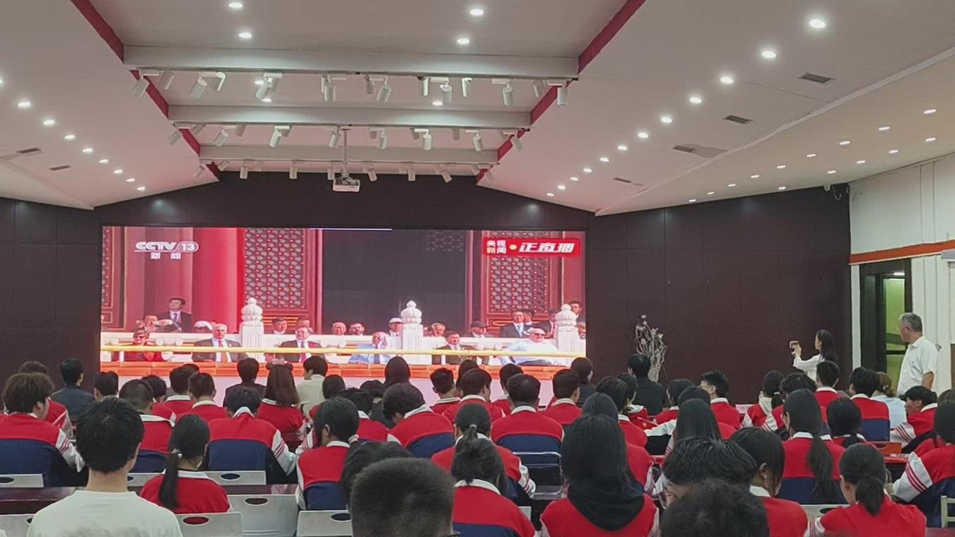 9月3日,物資職校200余名師生代表集中收看紀(jì)念大會實(shí)況直播,銘記歷史、緬懷先烈。習(xí)近平總書記的重要講話令學(xué)生備受鼓舞,增強(qiáng)了師生的民族自豪感與集體凝聚力,讓大家更清晰認(rèn)識到自身責(zé)任與使命。全體教師熱情高昂的表示將傳承弘揚(yáng)愛國主義精神,把抗戰(zhàn)精神融入課堂,牢記育人使命,為強(qiáng)國建設(shè)、民族復(fù)興作貢獻(xiàn)。廣大學(xué)生激情澎湃的表達(dá),將以先輩為榜樣,刻苦學(xué)習(xí)、堅(jiān)定信念,努力成長為擔(dān)當(dāng)民族復(fù)興大任的時代新人。